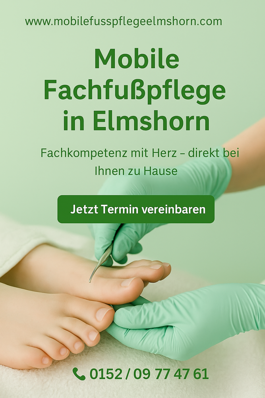 Bei der Mobilen Fusspflege Elmshorn biete ich Ihnen eine umfassende und effektive Fusspflege, die speziell auf Ihre Bedürfnisse abgestimmt ist. Mein Ziel ist es, Ihre Füße nicht nur zu behandeln, sondern auch langfristig gesund zu erhalten. . Lassen Sie sich von mir verwöhnen und erleben Sie, wie angenehm richtige Fusspflege sein kann. Gönnen Sie Ihren Füßen die Aufmerksamkeit, die sie verdienen!